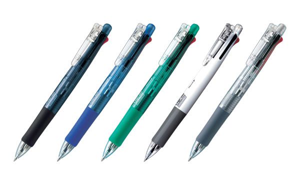 1本で黒・青・赤・緑の4色油性インクにシャープの5機能が使える多機能ペンです。