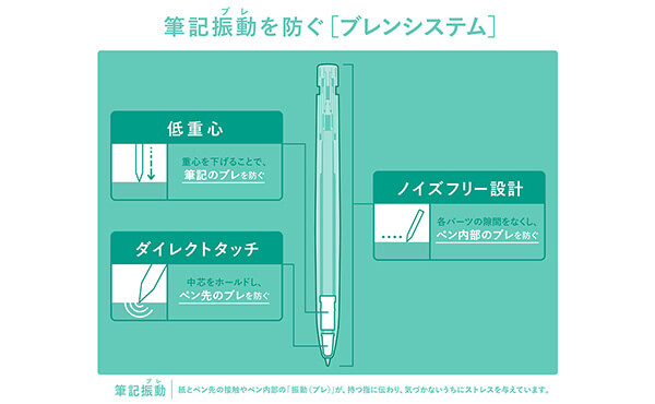 を軽減。 紙とペン先の接触時やペン内部の振動さえも軽減
